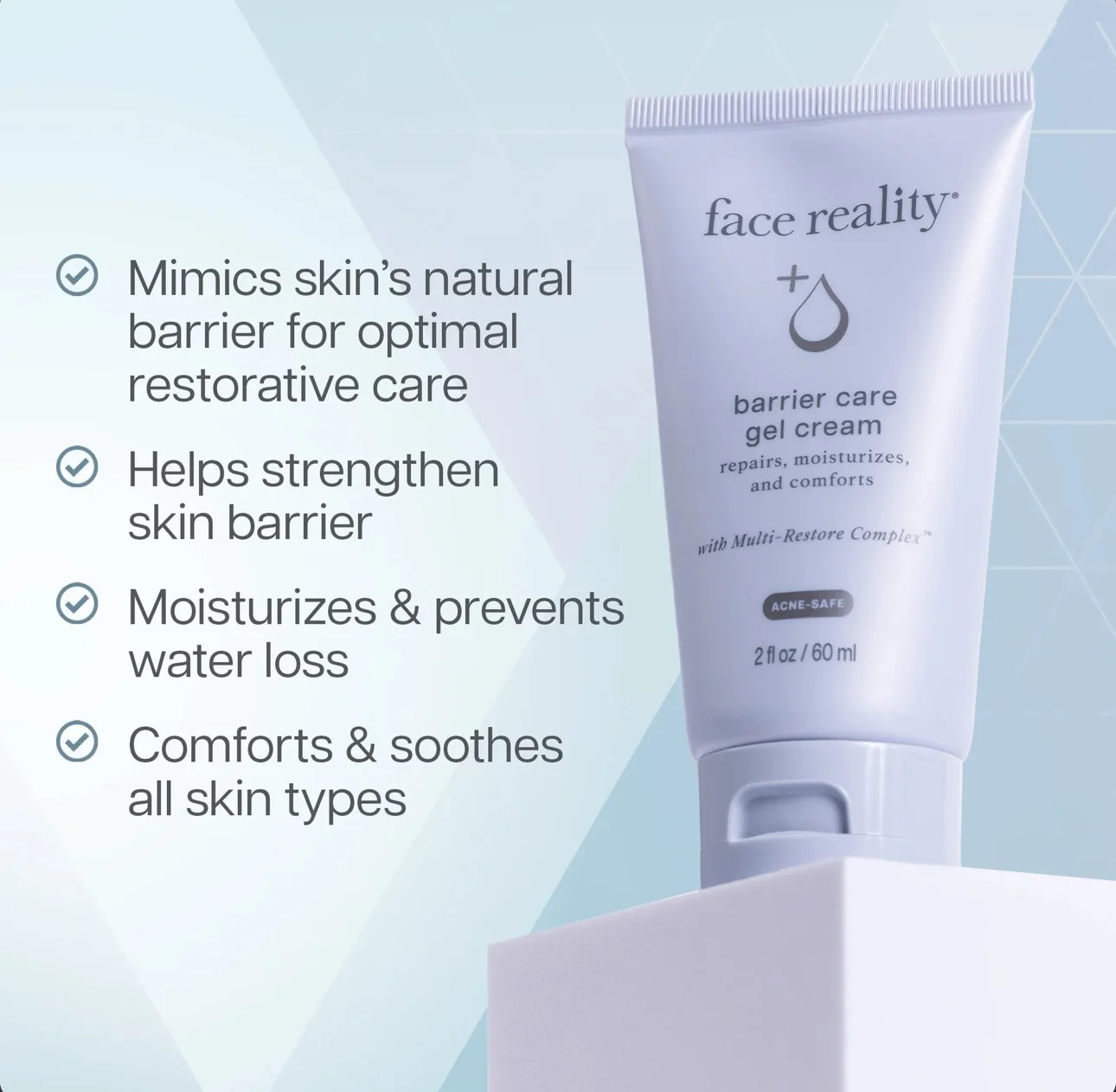The smarter way to stronger skin—Barrier Care Gel Cream uses skin-mimicking technology to restore what's been lost. Powered by the Multi-Restore Complex™ this formula delivers your barrier's own essential components—ceramides, squalane, and essential lipids—in ratios your skin instantly recognizes. A strong foundation keeps skin balanced and supports your journey to clearer skin. This lightweight gel cream supports any skincare routine, helping the barrier recovery process while locking in moisture to build skin's resilience for long term health.